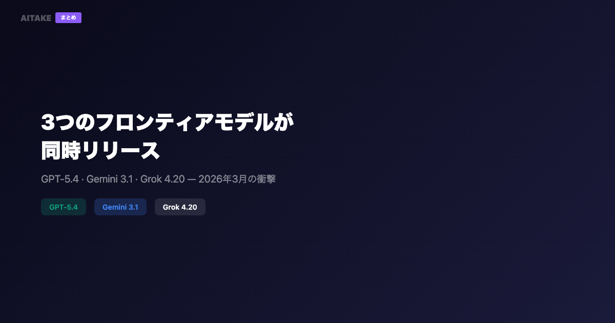 2026年3月、3つのフロンティアモデルが同時リリース——GPT-5.4・Gemini 3.1・Grok 4.20を徹底比較