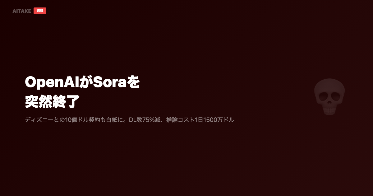 OpenAIがSoraを突然終了——ディズニーとの10億ドル契約も白紙に