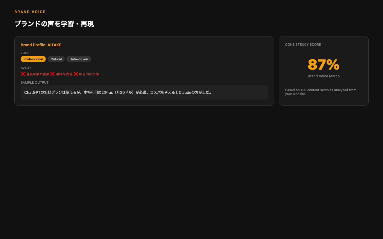 | Brand Voice反映 | 8/10 | 5/10 | 5/10 |